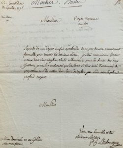 Pierre-Hubert LARCHEVÊQUE (1721-1778), sculpteur, il fut premier sculpteur du roi de Suède, et directeur de l'académie de sculpture de Stockholm. Lettre autographe signée. 1 p. in-4. [Juillet 1776]. Très rare lettre sur la sculpture des " deux Gustave " [Gustave II Adolphe et Gustave Vasa]. " L'approche de mon départ me fait appréhender de ne pas trouver un moment favorable pour recevoir vos derniers ordres. Je serai néanmoins exact à ceux dont vous avez bien voulu m'honorer pour les bustes des deux Gustave. Je ne suis embarrassé que de savoir si vous avez déterminé la proportion ou si la nature doit servir de règle [] ". Au dos, brouillon de réponse de son correspondant : " Je m'en rapporte entièrement à vous, Monsieur, des proportions qu'il conviendra de donner aux bustes que je vous ai chargé d'exécuter d'après les statues des deux Gustave : et je vous laisse à juger d'après vos propres idées s'il faut vous régler sur la nature ou prendre une autre base plus analogue aux objets ; au reste, vous sentez que les proportions nobles sont à préférer [] ".
