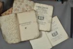 ACADÉMIE ROYALE DE MUSIQUE DE LYON. 9 livrets d'opéras représentés à Lyon par l'Académie Royale de Musique, brochés dans de beaux papiers dominotés du XVIIIe (tous différents), 1739-1742. Quelques salissures sur les tranches et la couverture (intérieur très frais). In-4, imprimerie d'Aimé Delaroche, " aux dépens de l'Académie ". - Issé, pastorale héroïque [du compositeur André-Cardinal Destouches, livret d'Houdar de La Motte] représentée par l'Académie Royale de Musique de Lyon (1739). - Les Fêtes d'Hébé ou les Talens lyriques [de Jean-Philippe Rameau sur un livret de Montdorge], ballet représenté pour la première fois par l'Académie Royale de Musique de Lyon, en l'année 1740. - La Chercheuse d'esprit, opéra-comique [de Jean-Claude Trial, livret de Favart], mis au Théâtre de l'Académie Royale de Musique de Lyon (1741). - Omphale, tragédie [opéra du compositeur André-Cardinal Destouches, livret d'Houdar de La Motte] représentée par l'Académie Royale de Musique de Paris [] et par celle de Lyon (1739). - La Triomphe de l'Harmonie, ballet héroïque, représenté par l'Académie Royale de Musique de Lyon en l'année 1740 [musique de François Lupien Grenet sur un livret de Lefranc de Pompignan]. - Hypermnestre, tragédie, mise au théâtre de l'Académie Royale de Musique de Lyon (1742) [opéra de Charles-Hubert Gervais sur un livret de Joseph de Lafont]. - Tancrède, tragédie [d'André Campra, sur un livret de Danchet], " représentée par l'Académie Royale de Musique de Paris [] et par le nouvel établissement de l'Académie Royale de Musique de Lyon ", 1740. - Zaïde, reine de Grenade, ballet héroïque [de Pancrace Royer, sur un livret de l'abbé de La Marre] représenté pour la première fois par l'Académie Royale de Musique de Lyon, 1740. - Vénus et Adonis, tragédie en musique [d'Henry Desmarest sur un livret de Jean-Baptiste Rousseau] représentée par l'Académie Royale de Musique de Lyon (1739).