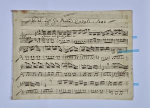 Giovanni Battista CASALI (1715-1792), compositeur italien. L'amor mi consiglia. Manuscrit autographe signé en tête " Del Sigre Gio Batta Casali " et daté " 1745 ". In-4 oblong, 7 pp. petite découpe en marge du premier feuillet. Très rare manuscrit d'une composition de Casali. Une copie de cette oeuvre figure à la British Library (Add Ms 31623).