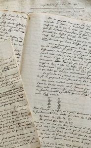 Jean-Baptiste LACOSTE (Dijon 1725-1793). Essai sur la musique et Dissertation sur la musique. 3 manuscrits autographes, l'un signé, de la seconde moitié du XVIIIe. 50 pp. in-folio et in-4, ratures et corrections. Il s'agit de trois versions différentes, avec biffures, corrections et ajouts, d'un même texte consacré aux études harmoniques dans la musique : " On appelle proportion harmonique celle dont le grand terme est au petit terme, comme l'excès du grand terme sur le terme moyen est à l'excès du terme moyen sur le petit terme. 6.8.12 sont en proportion harmonique parce que de même que 12 contient deux fois 6, ainsi que 4 dont 12 surpasse 8 contient deux fois le 2 dont 8 surpasse 6 [] ". Rare manuscrit du XVIIIe de théorie sur la musique, qui semble inédit.