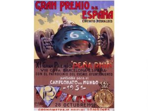1951. (AUTOMOVILISMO). GARCIA: GRAN PREMIO DE ESPANA CIRCUITO PEDRALBES. Barcelona: Seix y Barral, 1951. Litografía. 74x54 cm. (29x21,5 in.). A -. Marcas de doblez.