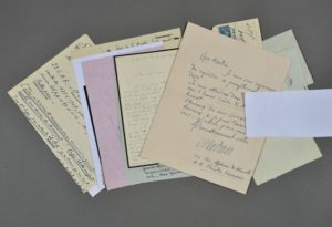 [Jules MASSENET]. 12 lettres et 1 manuscrit, adressés à Jules Massenet (quelques-unes à son épouse). Sâr Joséphin PÉLADAN (au sujet d'une collaboration), Jean-Alexandre TALAZAC (superbe lettre sur le Roi d'Ys et Werther), Maurice RENAUD (lui demandant de réécrire pour sa voix la sérénade de Don Quichotte), Renée THARAUD, Cora LAPERCERIE-RICHEPIN, Marie-Thérèse PIÉRAT, Jacques ROUCHÉ, Paul VIDAL, Jean de RESZKE (belle lettre), etc. ainsi qu'un manuscrit autographe de Jean RICHEPIN " Les mystères de la Djahi " [opéra de Massenet sur un livret de Richepin créé en 1889] (1 p. ½ in-4).