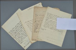 Pierre CLAIRAMBAULT (1651-1740), généalogiste des ordres du Roi ; Nicolas-Pascal CLAIRAMBAULT (1698-1762), son neveu, lui succéda à cette charge. 5 lettres autographes signées à différents correspondants. 6 pp. in-4. Versailles, Paris, Port-Louis, 1683-1756. Sur un notaire de Saulieu " accusé de fausseté ", la remise des papiers de la succession de feu M. Des Ragais (et leur inventaire), la menace que les Anglais font peser sur la Bretagne, la remise d'un registre par l'évêque de Bazas " dans lequel se trouvent quelques testaments de ses ancêtres ", etc.