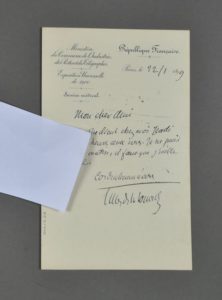 Georges GILLES DE LA TOURETTE (1857-1904), célèbre neurologue, auteur des travaux sur les tics convulsifs. Lettre autographe signée à " mon cher ami " [le docteur Goubert]. 1 p. in-8. En-tête du service médical de l'Exposition universelle de 1900. Paris, 22 janvier 1899. " Je recevrai votre client chez moi jeudi prochain à 5 heures avec vous. Je ne puis le recevoir le matin, il faut que j'aille à l'hôpital ". Rare.