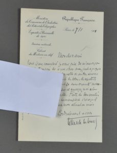 Georges GILLES DE LA TOURETTE (1857-1904), célèbre neurologue, auteur des travaux sur les tics convulsifs. Lettre autographe signée à un ami [le docteur Goubert]. 1 p. in-8, en-tête du médecin en chef de l'Exposition universelle de 1900. Paris, 7 janvier 1901. Préparation d'une allocution sur les oeuvres infantiles. " Tout bien considéré, je vous prie de m'envoyer un fort exposé de ce que vous avez fait à propos de la mutualité maternelle et autres oeuvres infantiles. Donnez-moi les titres, les résultats obtenus, développez-moi ça sans crainte currente calamo, sans le revoir et envoyez-moi cela par courrier si possible. Faites-en ressortir les cotés pratique et humanitaire, c'est ce qu'il (?) dans mon allocution, mais faites vites ". Rare.