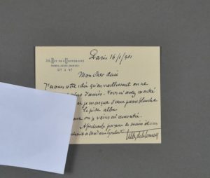 Georges GILLES DE LA TOURETTE (1857-1904), célèbre neurologue, auteur des travaux sur les tics convulsifs. Carte autographe signée [au docteur Goubert]. 1 p. in-12 oblong, en-tête à son adresse de la rue de l'Université. Paris, 16 janvier 1904. " J'avais cette idée qu'en vieillissant on ne se faisait plus d'amis. Vous m'avez montré le contraire et je marque d'une pierre blanche lapide alba le jour heureux où je vous ai rencontré [] ".