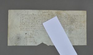 HENRI IV (1553-1610), roi de France. Pièce signée sur parchemin. 17 x 37,5 cm. Saint-Germain-en-Laye, 7 novembre 1594. Mandement d'Henri IV à ses conseillers et trésoriers François Hotman et Balthazar Gobelin, de payer 500 écus sol à " Anceaulme Du Gastel, seigneur de La Binoche, pour son paiement d'un cheval d'Italie soubz poil bay que nous avons faict prendre & achepter de luy en icelluy à l'instant faict mettre en nostre grande escurie pour nostre plaisir et service [] ". [Bai désigne une couleur de robe marron du cheval].