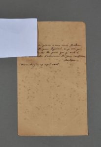 HORTENSE DE BEAUHARNAIS (1783-1837). Lettre autographe signée à la comtesse Esteva, à Constance. ½ p. in-8. Papier bruni. Adresse au dos. Arenenberg, 17 sept. 1826. " J'aurais bien du plaisir à vous revoir, madame, je vous attends pour déjeuner, et je vous prie de ne pas douter du prix que je mets à vous renouveler l'assurance de mes sentiments ".