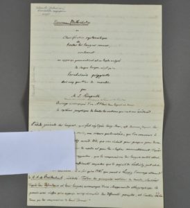 Julius KLAPROTH (1783-1835), orientaliste allemand. Manuscrit autographe signé, " Nouveau Mithridate ou classification systématique de toutes les langues connues contenant un aperçu grammatical et un texte analysé de chaque langue, ainsi qu'un vocabulaire polyglotte des cinq parties du monde, par M. J. Klaproth ". 3 pp. grand in-folio (37,5 x 24,5 cm). [Vers 1828]. Texte de présentation de son nouvel ouvrage. " [] Déjà Leibnitz avait dit que rien n'était plus propre pour découvrir la parenté des différents peuples du monde et pour les classer convenablement, d'après les liens naturels qui devaient les rapprocher, que la comparaison des langues entre elles [] ".