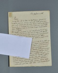 Pierre LE TOURNEUR (Valognes, Manche 1737-1788), homme de lettres et traducteur, sa traduction de Shakespeare est longtemps restée une version de référence. Lettre autographe signée, 4 pp. in-4. Paris, 8 février 1786. Longue lettre à son éditeur toute consacrée à l'édition de ses ouvrages. " [] M. Mérigot a le restant du manuscrit entre ses mains du 1er de ce mois. Ainsi nous sommes tous deux en règle à cet égard. M. Mérigot ne m'a rien dit de la censure. J'attends réponse de lui sur cet objet & vous en ferai part, avant de fermer ma lettre. Je présenterai donc dans quelques jours l'exemplaire en papier ordinaire à M. Vidant. Quant à l'exemplaire de Monsieur [frère du Roi], j'en ai pris un chez M. Poutard, que je fais relier & que j'aurai dimanche. Je compte le présenter mardi ou mercredi de l'autre semaine []. Il me reste à vous exhorter à terminer promptement l'impression de Clarisse [Clarisse Harlowe, traduit de Samuel Richardson] & de vos voyages. Clarisse surtout n'a éprouvé que trop de retard. Le portrait de Richardson auroit gagné à être revu du dessinateur. Je ne vous dirai rien des gravures : on n'y admire partout [] ". La discussion s'engage longuement sur les chiffres. " Si vous ne faites pas sur cette édition le bénéfice que vous en deviez retirer, et si vous êtes forcé de porter les rigueurs économiques aussi loin vis-à-vis de l'homme de lettres, je puis dire & vous conviendrez que ce n'est pas la faute de l'auteur, ni du succès de l'ouvrage, mais un peu la vôtre ; et que rien ne vous obligeoit à donner en 10 volumes ce qui pouvoit en comporter 12 5] ".