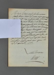 LOUIS XIV, roi de France. Lettre signée (signature autographe) à " ma tante ". 1 p. in-4. Paris, 21 novembre 1662. Tranches dorées. Encre avec paillettes d'or. Naissance de sa fille aînée, Anne-Elisabeth de France. " Ma tante, la Reyne accoucha fort heureusement vendredy dernier dix huitième de ce mois un peu après midy et puisqu'elle (?) qu'une fille, il m'a semblé que la bonne santé de l'une et de l'autre rendit cette nouvelle assés agréable pour vous la faire sçavoir. Je m'asseure que vous la recevrés avec la tendresse que vous m'avés toujours témoignée à laquelle je puis dire aussy quil est impossible de répondre avec plus d'amitié que je fais, et sur ce je prie dieu quil vous ayt ma tante en sa ste et digne garde [] ". [La petite Anne-Elisabeth n'aura qu'une très éphémère existence puisqu'elle décèdera le 30 décembre de la même année].