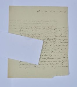 Florimond de MERCY-ARGENTEAU (1727-1794), diplomate. Lettre autographe signée à Mgr Jérôme Champion de Cicé (1735-1801), ancien archevêque de Bordeaux, en exil. 2 pp. in-4. Bruxelles, 16 août 1793. Petite rognure en marge. Au sujet des démarches entreprises auprès du comte de Metternich pour pouvoir se rendre en Flandre.