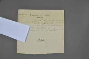 [DUMONT D'URVILLE]. Louis LE BRETON (1818-1866), dessinateur des expéditions de Dumont d'Urville. Pièce manuscrite signée. 1 p. in-4. Reçu pour l'exposition de ses dessins à Nantes. " Par Mr Le Breton dessinateur de l'Expédition au pôle austral commandée par Mr Dumont-Durville. 1° Épisode du combat de Malaga en 1667. 150 francs. 2° l'Astrolabe et la Zélée recevant un coup de vent au cap Horn ".