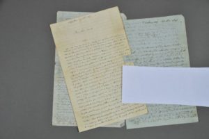 INDE. Père Verdier, missionnaire en Inde. 3 L.A.S. à ses parents. Negapatam, Trichinopoly et Palamcoltah, 1846-1850. 8 pp. in-8, sur papier fin. Déchirures à l'ouverture avec quelques manques. Adresses au dos avec quelques cachets postaux. Intéressante correspondance d'un père missionnaire parti évangéliser la population du sud de l'Inde et s'occuper de l'éducation d'enfants. Récit de son voyage jusqu'en Inde, premières impressions à son arrivée, description du pays, des habitants, de leur rapport à la mort, de la flore, de la domination des Anglais qui " sucent les pauvres indiens ", de leur religion. Des pères anglais sont arrivés et les élèves leur ont été confiés. Le père Verdier est donc parti évangéliser la population à travers la province, au sein de l'archiconfrérie du Coeur de Marie. " Voilà trois années qu'elle est établie dans le Marava et elle porte des fruits admirables. Avant ces trois années le chiffre des conversions de payens ne s'élevait guère au-delà de 10 ou 20 par an. Aussitôt l'archiconfrérie établie, ce nombre a été doublé. Un an après les conversions s'augmentaient d'une manière sensible et bien consolante, il y en a eu plus de 100 et, cette année, 221. Mais voilà que je quitte cette partie est de la mission, je n'y ai été que 2 mois plutôt pour m'édifier et me mettre au courant de la vie de Missionnaire [] ". Il part s'installer à Palamcoltah et répond longuement aux interrogations de sa famille.