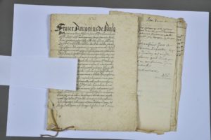 ORDRE DE MALTE. - Cahier manuscrit de 5 pp. in-4, en latin. Malte, 1631. Manque le sceau (reste la corde). Signé par le Grand Conseiller du Grand Maître de l'ordre (Antoine de Paule). Réception de Don Gabriele Ortiz de La Pena, dans l'ordre Saint-Jean de Jérusalem. - liasse de 11 documents concernant le chevalier de Coulombière : reçu de l'agent général de l'ordre de Malte au grand prieuré d'Auvergne, arrentements, comptes, etc. 1714-1720.