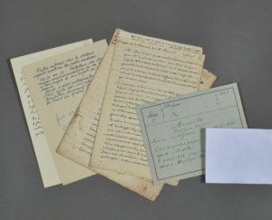 PORT-ROYAL. 2 documents. - Antoine ARNAULD (1612-1694), dit " le Grand Arnauld ", chef de file des Jansénistes. Manuscrit (autographe ?), 2 pp. in-8. Mention ancienne en haut du document : " Original de la main de M. Arnauld ". Transcription ancienne jointe. " Ma mère, le jour qu'elle reçut l'extrême onction pria M. Singlin de me dire que Dieu m'ayant engagé à la défense de la vérité, je le devois soutenir quand il iroit de la perte de mille vies, et qu'elle prioit Dieu de me défendre toujours dans l'humilité, afin que je ne prisse point de vanité [] ". - Manuscrit de 4 pp. in-4, Extrait d'une lettre du 11 aoust 1694 ". Mention ancienne en haut : " cette lettre est du père Quesnel à ma soeur Angélique Thérèse Arnauld religieuse à PR des Champs nièce dudit deffunt ". Il est joint une fiche d'une ancienne collection donnant la provenance de ces documents : " Donné par mon ami Hubert Durillon le 9 avril 1909, la veille de son entrée à l'hôpital Saint-Joseph [] ". Ainsi que quelques autres documents.