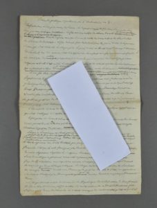 PORTIQUE RÉPUBLICAIN. Michel de CUBIÈRES (1752-1820), poète et auteur dramatique, l'un des fondateurs du Portique Républicain et son secrétaire. Manuscrit autographe signé, avec corrections. 1 p. ½ grand in-folio (36 x 24 cm). 8 vendémiaire an 8 [28 septembre 1799]. Intéressant compte-rendu de la séance inaugurale du Portique républicain, par Michel de Cubières qui en était le secrétaire. " Le fondateur le cit. Piis ouvra la séance. Les enfants aveugles du cit. Haui [Valentin Hau] l'ouvrent à leur tour par une musique mélodieuse. Le cit. Moreau artiste du théâtre des arts chante un hymne républicain dont le refrain est : que l'union des vertus des beaux-arts et des loix sur l'air de l'hymne des Versaillais []. Le citoyen Piis lit ensuite les noms des membres qui composent les 4 classes du portique républicain []. Il fait prêter le serment à tous les membres, il le prête lui-même, la formule du serment circule parmi tous les membres qui tous le signent successivement. Les enfants aveugles chantent On peut n'être mieux []. Le citoyen Michot artiste du Théâtre de la République lit la traduction en vers français de deux odes d'Horace []. Le citoyen Tobie lit un discours contre le fanatisme, il y fait l'éloge de la bonne morale et surtout de la tolérance, il y prêche l'amour des loix []. La séance a été terminée par l'hymne à la Concorde, paroles du citoyen Varlier musique du citoyen Charpentier [] ".