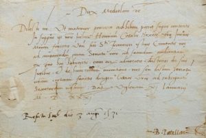 [François II SFORZA (1495-1535), dernier duc de Milan]. Lettre signée en son nom, adressée à " sapienti doctori Pretori Derthoni, nostro dilecto " [au sage docteur Pretori, à Tortone, notre ami]. 1 p. in-folio oblong. Viglenani, 11 janvier 1531. Sceau armorié sous papier avec languette de fermeture. En latin. Transcription jointe. Lettre écrite au nom du duc, signée par son secrétaire B. Patellan. " [] vous ferez avertir les vénérables frères de St-François de notre cité à comparaître devant notre sénat à la seconde audience, dès que vous l'aurez, pour plaider avec leurs avocats sur leurs droits et vous nous informerez de la fourniture de ce moyen de défense, en adressant vos lettres au secrétaire soussigné [] ".