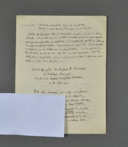 [VOLTAIRE]. Philippe Louis JOLY (Dijon 1702-1762), philologue, chanoine de la chapelle-au-Riche à Dijon. Lettre autographe signée avec poème [à VOLTAIRE]. 2 pp. ½ in-4 (incomplète du début). Dijon, 9 mai 1746. Superbe lettre d'admiration à Voltaire, avec poème, à l'occasion de son élection à l'Académie française. " Je finis cette trop longue lettre, en vous prie, monsieur, d'agréer la pièce suivante. C'est un tribut que j'ai cru devoir au mérite supérieur de deux hommes pour qui mon admiration est sans bornes ". Ce poème de 10 vers est intitulé : " Sur la Réception de M. de VOLTAIRE à l'Académie Françoise, à la place de Monsieur le Président BOUHIER, le 9 mai 1746 ". Il ajoute dans un postscriptum : " J'ai pris la liberté, dans un endroit de mon ouvrage, de n'être pas de votre sentiment sur les louanges que vous donnez à Du Plessis-Mornay dans une note de votre Poëme immortel de la Ligue [La Ligue ou Henry le Grand]. J'ai pesé avec une attention extrême le mérite de ce fameux protestant, afin de pouvoir prononcer sur le jugement par lequel un Auteur moderne lui attribuë un Livre qui a fait beaucoup de bruit ; et je me suis convaincu que Mornay étoit absolument incapable de l'avoir composé. Quoique je n'aye rien dit qui puisse blesser le moins du monde la vénération que j'ai pour vous, Monsieur, je soumettrai avec joye ma petite critique à votre décision [...]. Je sçais que chargé en tout tems d'occupations importantes, vous l'êtes surtout actuellement. C'est pourquoi j'ôse vous prier, Monsieur, si vous daignez faire quelque attention à ma lettre, de la regarder comme non-reçüe, jusqu'à ce que vous soyez pleinement débarrassé des soins que vois impose votre nouvelle Dignité ". Voltaire : voir également n°46
