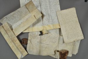 HAUTE-MARNE. Dossier concernant la seigneurie de Vaudremont. - charte du 3 mai 1489, scellée par un joli sceau double-face bien frappé : donation faite par dame Guillemette, veuve de Jean Fourateau, à Tristan son fils puiné, de tout ce qu'elle a hérité de la seigneurie de Vaudremont. - Mandement de François 1er à Pierre de Saint-Belin, " seigneur de Vauldrymont ". 27 juin 1541. - Reprise de foi hommage rendu par Antoinette de Choiseul pour les seigneuries de Vaudremont et Saint-Martin (1624). - 2 parchemins scellés par des sceaux en cire brune, concernant la plainte de Nicolas de Saint-Belin seigneur de Vaudrement et de Blézy, capitaine d'une compagnie de chevaux légers, contre le sieur Saint-Michel coupable de violences et exactions perpétrées à Blézy - Manuscrit d'un très intéressant procès-verbal du duel qui s'est déroulé en 1638 à Vaudremont entre le seigneur de Colombey et Antoine de Saint-Belin, qui fut tué. 8 pp. in-4.