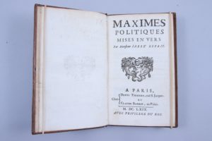 ESPRIT, Antoine (16..-1697) Maximes politiques mises en vers, par Monsieur l'abbé Esprit. Paris, Thierry et Barbin, 1669. In-12, XI et 64 pages. Veau du temps. Parfois attribué à son frère, Jacques Esprit, dit l'Abbé, bien que jamais ordonné...