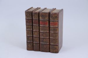 1697. 4 volumes in-12, plein veau du temps, dos ornés. Tranches mouchetées. (Reliures habilement restaurées. Rousseurs sur le premier et le dernier cahier de chaque volume). Ex-libris manuscrit fin XVIIIème : Châteauneuf. (Joint, du même :) Nouvelles lettres de Messire Roger de Rabutin, Comte de Bussy, lieutenant général des armées du Roy et Mestre de camp général de la cavalerie françoise et étrangère. Paris, chez Florentin Delaulne, 1709. 3 volumes in-12, veau moucheté du temps, dos ornés. (Les fers sont différents de ceux des Lettres de 1697). Ex-libris manuscrit XVIIIème : Le Brun Edition originale des Lettres et des Nouvelles Lettres de Bussy-Rabutin. Cette correspondance a été publiée par le Père Bouhours sur les conseils de la Marquise de Coligny, fille de Roger de Rabutin. On y trouve en édition originale près de 247 lettres échangées entre Bussy-Rabutin et la Marquise de Sévigné, sa cousine, parfois fautives ou parcellaires. C'est la plus importante publication des Lettres de la Marquise avant les éditions de 1725-1726. (En français dans le texte, n°110)