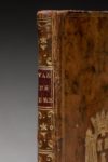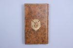 Pompadour au centre des plats. Filet sur les coupes. (Quelques légères rousseurs). Seule et très rare édition de ce récit de vendanges festives à Brétigny sur Orge, dont le vignoble était réputé. L'ouvrage est entrecoupé de chansons bachiques, entonnées par les vendangeuses (charmantes) et les vendangeurs (grivois). La provenance est prestigieuse. La Marquise de Pompadour a acquis l'ouvrage à la vente de la Bibliothèque Crozat, qui se déroula en 1751 ; il figure au "Catalogue de la vente des Livres de Monsieur le Président Crozat de Tugny", l'une des plus grandes ventes de livres au XVIIIème siècle, sous le numéro 2678. On le retrouve dans le catalogue de la Bibliothèque de feue Madame la Marquise de Pompadour, dispersée en 1765, sous le numéro 2075. La mention manuscrite ancienne Ex-bibliotheca D. Crozat figure au verso du titre. Sur le premier contre-plat, a été appliqué l'ex-libris gravé d'Abel Poisson de Vandières, Marquis de Marigny, qui hérita de sa soeur, la Marquise de Pompadour, du château de Ménars. (Ne se trouve ni dans "Les fastes de Bacchus et Comus". de Gérard Oberlé, ni dans le catalogue de la collection Kilian Fritsch, "Une bibliothèque bachique", établie par le même savant bibliographe. Un seul exemplaire répertorié : BNF).