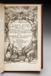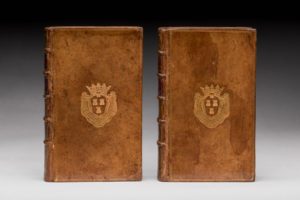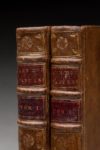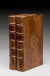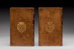Frontispice de Demaretz gravé par Thomassin et daté 1707, XIV et 411 pages, (2 ff) de catalogue des livres de Brunet. Tome II : (1 f), 452 pages, (2 ff) d'approbation, datée 1736, et de Privilège.) Plein veau fauve, triple encadrement de filets dorés, armes de Madame de Pompadour au centre des plats. Dos à 5 nerfs orné dans les caissons d'un fer à l'acanthe. . (Un coin frotté ; petite restauration à un mors du tome II ; tache claire sur le plat supérieur du tome II.) Frontispice et 12 figures de Desmaretz gravées par Thomassin. Première édition de la traduction de Compain de Saint-Martin du seul roman entièrement conservé de la Rome Antique. Mélangeant érotisme, magie et crimes épouvantables, il est à la fois un texte d'initiation à la magie et une mise en garde contre la sorcellerie. (Cohen, colonne 28). Les deux volumes portent sur le titre la mention Crécy, légèrement amputée par le relieur. Le Château de Crécy a été offert en 1746 par Louis XIV à la Marquise, âgée de 25 ans ; elle le revendit en 1757 au Duc de Penthièvre. Il fut détruit à la Révolution. De part et d'autre du fleuron du titre, ex-libris manuscrit Madame de Pompadour. N° 1476 du Catalogue des livres de feue Madame la Marquise de Pompadour, vendus aux enchères en 1765.