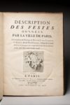 LIVRE DE FETES. Description des Festes données par la ville de Paris à l'occasion du Mariage de Madame Louise-Elizabeth de France, & de Dom Philippe, Infant et Grand Amiral d'Espagne, les vingt-neuvième et trentième Août mil sept cent...