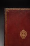 trente-neuf. A Paris, de l'Imprimerie de Le Mercier, Imprimeur-Libraire ordinaire de la Ville, rue Saint Jacques, au Livre d'Or. 1740. Grand in-folio. Dimensions intérieures 628 X 450 mm. Titre, 22 pages et 13 planches hors-texte, dont 8 doubles. Plein maroquin rouge, 2 roulettes sur les plats, séparés par 2 filets droits, la plus large roulette formant un rinceau fleur-de-lysé ; fleurons d'angle à la fleur de lys. Grandes armes de Paris au centre des plats. Dos à dix nerfs, orné dans les caissons de fleurs de lys et d'étoiles ; roulette sur les coupes ; rinceau fleur-de-lysé sur les chasses. Toutes tranches dorées. Etiquette sur le titre "Relié par Padeloup, Relieur du Roy, Place Sorbonne à Paris". (Ors des coupes et des tranches légèrement passés. Restauration discrète au mors supérieur. Quelques petites déchirures marginales renforcées) Bon exemplaire, nonobstant les défauts signalés, de ce beau Livre de Fêtes, célébrant le mariage de la première fille de Louis XV avec le fils de Philippe V d'Espagne. Il est illustré d'un fleuron de Bouchardon sur le titre, d'une grande vignette dessinée et gravée par Rigaud, représentant une joute sur la Seine, et de 13 planches dessinées et gravées par l'architecte Jacques François Blondel. Certaines de ces planches sont restées célèbres : "Plan et élévation géométrale du salon de musique ... élevé sur la rivière entre le Pont Neuf et le Pont Royal", "Elévation géométrale du trône construit pour Leurs Majestés", "Veue générale des décorations, illuminations et feux d'artifice de la feste", Vues "de l'Hôtel de Ville ... Où s'est donné le bal la nuit du XXX au XXXI Aoust 1739". Comme la plupart des reliures des livres de fêtes de cette période, celle-ci a été établie dans l'atelier d'Antoine-Michel Padeloup (1685-1753), relieur du Roi de France et relieur du Roi du Portugal.