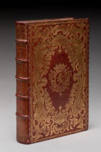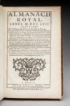 et d'un filet droit. Au centre des plats, armes de Louis Jean Bertier de Sauvigny. Roulette intérieure ; gardes de papier d'Augsburg. Toutes tranches dorées. (Ors du dos légèrement ternis). Très riche reliure à plaque de Pierre-Paul Dubuisson, qui porta le titre de Relieur du Roi à partir de 1758. Louis-Jean Bertier de Sauvigny (1709-1788) fut intendant de la Généralité de Paris de 1744 à 1776. M. T*** tenait à posséder un bel exemplaire de l'Almanach de 1757 : pour la première fois, en effet, le nom de Madame de Pompadour figure, à la page 119, parmi les Dames du Palais