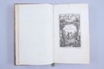 d'encadrement ; dos sans nerf très orné ; pièce de titre de maroquin vert ; filet droit sur les coupes ; roulette intérieure. Toutes tranches dorées. Reliure du temps. Premier tirage de l’édition originale, reconnaissable aux erreurs de pagination dans Le Mois de Mai. Très bel exemplaire sur grand papier de Hollande, à grandes marges, avec les titres en rouge, sans aucune rousseur, du "chef d'oeuvre du XVIIIème siècle" (Cohen). Toutes les figures, en épreuves parfaitement contrastées -frontispice, vignette de titre, hors-texte représentant le mariage du Dauphin et de Marie-Antoinette, 22 vignettes et 22 culs-de-lampe historiés- sont protégées par leur serpente de vergé surfin. Tous ces dessins sont de Eisen, excepté 2 qui sont de Marillier. Ils ont été gravés en taille-douce par les principaux graveurs du temps : de Longueil, Binet, de Launay, Masquelier etc... "Il faut, pour bien apprécier ses ravissantes illustrations se procurer les exemplaires sur grand papier de Hollande, avec les titres en rouge dont le prix varie suivant la beauté des épreuves, la grandeur des marges, la reliure et la condition" (Cohen, col. 160-161). Parfait exemplaire.