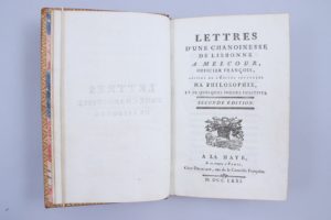 DORAT, Cl. Joseph (1734-1780). Lettres d'une chanoinesse de Lisbonne à Melcour, officier françois, suivies de l'Epitre intitulée Ma Philosophie, et de quelques Poésies Fugitives. Seconde édition. A La Haye, et se trouve à Paris, chez Delalain....