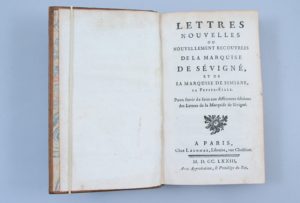 Sévigné. A Paris, chez Lacombe, 1773. In-12, veau raciné. Reliure du temps. "Ce recueil contient deux parties inédites et une réimpression" (Rochebilière). (Tchemerzine, X, page 329. Rochebilière, n°687).