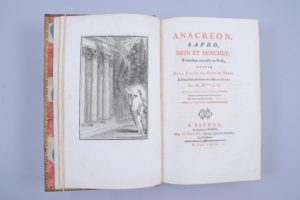 MOUTONNET-CLAIRFONDS, Julien-J. (Le Mans 1740-Paris 1813). Anacréon, Bion, Sapho et Moschus. Traduction nouvelle en prose, suivie de la Veillée des Fêtes de Vénus et d'un choix de pièces de différents auteurs. Par M. M***C**. A Paphos, et se...