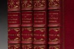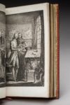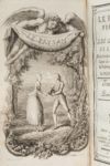 Esprit, Libraire de S.A.S. Mgr le Duc de Chartres, au Palais Royal, sous le vestibule, au pied du grand escalier. 1776 (1782 ou 1784) 8 parties en 4 volumes in-12. VIII et 304 pp ; 312 pp ; 304 pp ; 293 pp et (3 pp). (Dimensions intérieures: 162 X 102 mm). Plein maroquin cerise ; triple filet d'encadrement ; dos très ornés avec la date de 1776 portée en queue. Double filet sur les coupes. Roulettes intérieures et filet au pointillé. Toutes tranches dorées sur marbrure. (Nombreuses notes manuscrites au crayon, sur les gardes blanches.) La reliure, parfaitement établie vers 1880, n'est pas signée, mais une des roulettes intérieures appartient au matériel de Chambolle-Duru, comme l’indique une note manuscrite pertinente de M. T*** Bel exemplaire de la première édition illustrée du Paysan Perverti, le chef-d’œuvre de Restif, avec les 82 belles figures de Binet, montées sur onglet : c'est la meilleure édition de l'époque, de l'aveu même de Restif, bien qu'il prétende qu'elle est l'oeuvre de contrefacteurs; Il est en vérité "tout à fait probable que Restif avait lui-même fait réimprimer son roman, en cachette, sous la rubrique de Paris, avec la date de 1776, quoique l'édition ne puisse avoir paru avant 1784, comme le prouve un Avis qui se trouve au verso du titre du Tome I : "Cette édition est adaptée à la Paysane [sic] pervertie du même auteur". Or la Paysane [sic] pervertie n'est publiée qu'en 1784. "Cette édition qu'on peut supposer imprimée en Suisse, à Neufchâtel ou à Berne, contient 288 lettres ; plus des lettres recouvrées à la fin du quatrième volume, avec une Lettre de l'auteur aux libraires ; les additions et corrections de la page 226 à la page 241, et enfin la description des figures " (Jacob). C'est la première qui comporte un errata de l'auteur, et la table des gravures à insérer dans l'ouvrage. Restif, dans sa "Lettre de l'auteur aux libraires" (placée tome IV, page 225) remercie les "contrefacteurs" pour la "politesse" qu'on lui fait de lui demander un errata "avec l'offre gracieuse de le mettre" tel qu'il leur enverra. Il ajoute : "quant aux gravures qu'on vous offre de placer dans votre édition, j'en ai vu les dessins ; les sujets m'en paraissent bien-choisis. Je vous envoie les Programmes que j'en ai donnés, pour les placer à la fin de l'ouvrage. Le Portrait de l'auteur est inutile." Les estampes, publiées séparément probablement entre 1781 et 1784 "ont été insérées par l'auteur ou par ses libraires dans les exemplaires de cette édition du Paysan perverti". (Jacob). Les estampes 8, 24 et 33 ont été censurées : elles figurent ici dans les deux états, avant la censure, et après la censure. (Jacob, pages 181 -184 ; Rives-Child, pages 236-239)