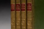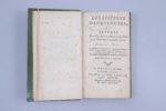 Sagesse, rue Galande. 1782. 4 tomes en 4 vol. in-12 (Hauteur intérieure 165 mm) ; 248, 242, 231, et 257 pages, et (1 page) pour les errata. Plein maroquin vert, double filet d'encadrement sur les plats ; dos sans nerfs encadrés de deux filets dorés, pièces de tomaison de maroquin rouge ; toutes tranches dorées. Reliures de la fin du XIXème siècle. (Dos très insolés. Restauration à la marge de gouttière du faux-titre du tome I ; rousseurs sur les gardes volantes. Cachet gras au verso des titres "Raabe. Leih. Bibl.") Véritable édition originale des Liaisons Dangereuses, avec le feuillet d'errata. Elle est parfaitement conforme à la description de l'Edition A, Originale. (Max Brun, Bibliographie des éditions des Liaisons Dangereuses portant le millésime 1782, pages 8 à 10)