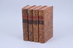 Paysan Perverti. Imprimé à La Haie. Et se trouve à Paris chez la dame veuve Duchesne, libraire, en la rue Saint Jacques, au Temple du Goût. 1784. 8 parties en 4 volumes, plein veau raciné du temps. Frontispice, (1-9) 10-344 pp ; frontispice, 320 pp. chiffrées 220 ; frontispice, 320 pp ; frontispice, 344 pp, 8 pp, pp CLIX-CCXLIV pour la Revue des Ouvrages de l'auteur, (6 ff) pour les Ouvrages du même auteur. (Ors du dos un peu frottés ; quelques rousseurs, plus marquées sur les planches). Edition originale, rare en reliure du temps. Bien complet des 38 planches de Binet, dont les planches censurées. "La censure ayant ordonné la suppression du titre de ce roman, La Paysane pervertie, on ne doit le trouver que dans bien peu d'exemplaires, car il a été recouvert par un nouveau titre soigneusement collé par-dessus..." (Jacob). Seuls le faux-titre et le titre du tome I n'ont pas été recouverts d'un feuillet encollé, et gardent les mots de Paysane Pervertie, qui apparaissent encore en transparence dans les 3 autres tomes. (Jacob, XXVIII, pages 224 à 232 ; Rives-Child, XXIX, page 289).