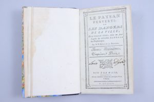 RESTIF DE LA BRETONNE, Nicolas-Edme. Recueil factice de 20 figures de Binet pour illustrer le Paysan Perverti. In-12, 1/2 veau moderne. (On joint :) Explication des figures de la Paysane pervertie. Avec l'Avis des Libraires pour Les Dangers de la...
