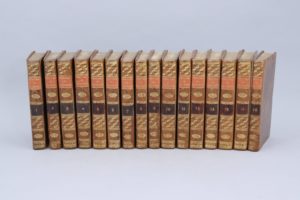 Essai sur l'Histoire Générale. A Maestricht, chez J.E. Dufour et Ph. Roux, associés. 1789. 16 volumes in-12, pleine basane flammée. Reliures du temps. Les tomes I à VI renferment les Mémoires ; les tomes VII à XV les Lettres. Le tome XVI est intitulé "Les souvenirs de Mme de Caylus pour servir de supplément aux Mémoires de Mme de Maintenon". Edition ancienne la plus complète. "La Beaumelle a eu communication des papiers de Mme de Maintenon, et, pour des raisons particulières, les altérations du texte ont été concertées entre les dames de Saint-Cyr et lui : mais on ne peut dire que Mme de Maintenon n'a pas écrit ces lettres puisque les manuscrits subsistent". (Bourgeois et André, Sources de l'histoire de France, II, 1188).