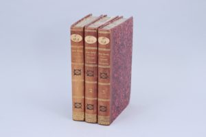 Avec des notes et observations par M. de Casaux, et des cartes géographiques de la navigation et du climat. Paris, Buisson, 1793. 3 vol. in-8, 1/2 veau fauve . Reliure établie vers 1820. 468, 498 et 416 pages. Edition originale de la traduction en français, par François Soulès. Cet ouvrage, publié en anglais en 1792, est considéré comme le tableau fidèle de la France, principalement agricole, à la fin de l'Ancien Régime. Bien complet des deux grandes cartes dépliantes.