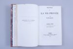 Imprimerie et fonderie d'Everat pour le tome II, bien complet des 2 feuillets d'annonce. Scènes de la vie de province Paris, Madame Charles Béchet, 1834 (Tomes I et II), Werdet, 1837 (Tomes III et IV) Imprimerie de Barbier pour les tomes I et II ; Imprimerie de Bourgogne et Martinet pour les tomes III et IV. Scènes de la vie parisienne. Paris, Madame Charles Béchet, 1834-1835 Sans nom d'imprimeur pour le tome I ; Imprimerie de Barbier pour les tomes II et III ; Imprimrie et fonderie d'Everat pour le tome IV. En tout 12 volumes in-8. Hauteur intérieure 188 mm. Reliure pastiche, bien établie, en 1/2 veau cerise, dos orné à 4 nerfs. (Exemplaire lavé). Importante édition, première tentative ou première forme de La Comédie Humaine. De nombreux textes de Balzac sont ici en édition originale, certains sous un titre provisoire : La Fleur des Pois, La Recherche de l'Absolu, Eugénie Grandet,, La Femme Abandonnée, La Grenadière, L'Illustre Gaudissart, la Grande Bretèche ou les Trois vengeances, La Vieille fille, Illusions perdues, Les Marana, Ferragus, La Duchesse de Langeais, La Fille aux Yeux d'or, et l'Histoire des Treize (dont la Comtesse aux Deux Maris, qui deviendra Le Colonel Chabert). L'édition fut commencée par Madame Béchet qui était devenue propriétaire des droits en liquidant les dettes de Balzac envers Mame ; elle se retira en 1836, laissant à Werdet le soin de terminer l'entreprise. (Conforme à Vicaire, I, col. 196, 197, 198, 199). (On joint :) 15 septembre 1836 : Nouvelles publications de Ed. Werdet libraire-éditeur, à Paris. Paris, Béthune et Plon, 1836. Brochure gd. in-8, 8 pages. Couvertures d'attente. Contient l'annonce suivante : "Sous presse pour paraître dans l'ordre suivant : De Balzac, Les Illusions Perdues ... Ces deux volumes forment les tomes III et IV de la Vie de Province, et les tomes VII et VIII des Etudes de Moeurs au XIXème siècle, qu'ils complètent. Les Illusions perdues paraîtront au plus tard dans le courant d'octobre prochain".
