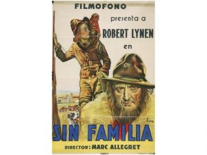 VILA1934. (CINE). VILA: SIN FAMILIA. (SANS FAMILLE). Madrid: Rivadeneyra. Litografia. A-. 100x70 cm. (39x27,5 in.). Marcas de doblez y pequena rasgadura en el margen superior sin pérdida.