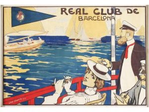 1902. (DEPORTES). LLAVERIAS, JOAN: REAL CLUB DE BARCELONA. Litografía. 77x111 cm. (30,5x43,7 in.). Pequena falta en la parte central del margen inferior y rasgadura en el margen derecho. B.