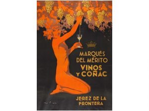 1900 ca. RIBAS: MARQUES DEL MERITO. VINOS Y CONAC. JEREZ DE LA FRONTERA. Valencia: J. Ortega. 165x118 cm (65x46,5 in.). Litografia. Entelado. A - .