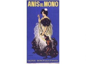 1900 ca. (PUBLICIDAD). CASAS, RAMON: ANIS DEL MONO. Litografia de Ramón Casas sobre cartulina. 105x55 cm. (41x22 in.). Colores intensos.