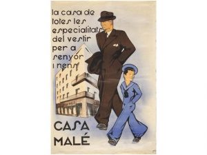 1920 ca. (PUBLICIDAD). OROZOO: CASA MALE. La casa de totes les especialitats. Barcelona: Lit. Giralt. Litografia. 100x70 cm. cada uno (39x27,5 in.). A-. Leves rasgadurs en los margenes.