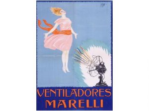 1930 ca. (PUBLICIDAD). LILLO: VENTILADOR MARELLI. Milano: Lit. Rag. C. Sala & C. Milano, sa. Litografia. 99x70 cm. B-. Marcas de doblez con pequenas faltas en los bordes y diminuta falta en la parte centrai.