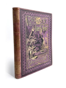 Véritable première édition illustrée en volume double comme le montre l'absence de page de titre avec les deux titres. Rare en violet avec des ors rutilants. Dos très légèrement insolé comme souvent dans cette couleur, avec des ors très présents. Intérieur quasiment exempt de rousseurs. Très bel exemplaire non restauré ce qui est encore plus rare.