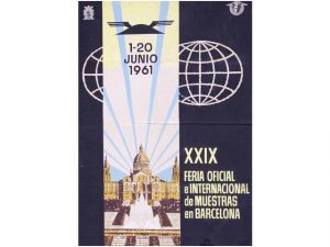 1961. (FERIAS Y CONGRESOS). ORIGINAL PARA CARTEL. XXIX FERIA OFICIAL E INTERNACIONAL DE MUESTRAS EN BARCELONA. Aguada sobre papel. 100x70 cm. (39x27,5 in.). B. Pequenas rasgaduras en los margenes.